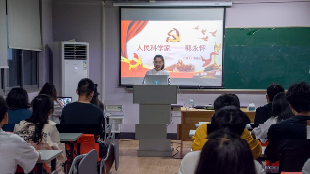 最後,費穎欣同學以中國共産黨史上優秀黨員為例,聲情并茂地介紹人民科學家——郭永懷的事迹。鮮活的紅色故事讓同學們感受真切,并紛紛表示要繼承和發揚共産黨員的革命精神。
