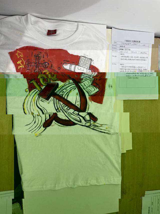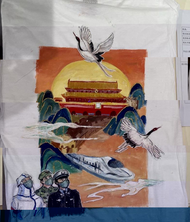 同學們以中國共産黨建黨100周年以來,各個曆史時期的重大曆史事件、英雄人物、優秀人才、先進事迹等為創作素材,充分發揮自己的想象力和創造力,打破傳統設計觀念,利用種種獨特的中國元素,将原本平平無奇的T恤裝點成獨具藝術風格且有寓意的作品。