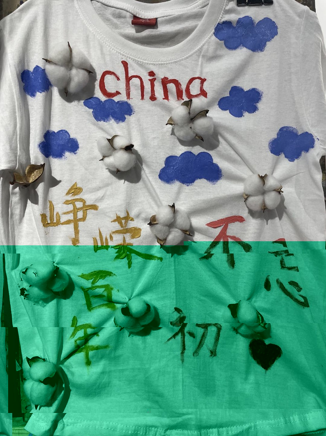 創新性的使用新疆棉花來裝飾T恤,讓人眼前一亮