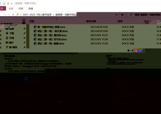 針對線上授課的特殊性,數媒教研室要求本教研室老師們在課程授課結束後,完成周記,對本周的線上教學進行梳理和總結,并形成教學文檔,便于接下來的課程順利及高效授課奠定基礎。
