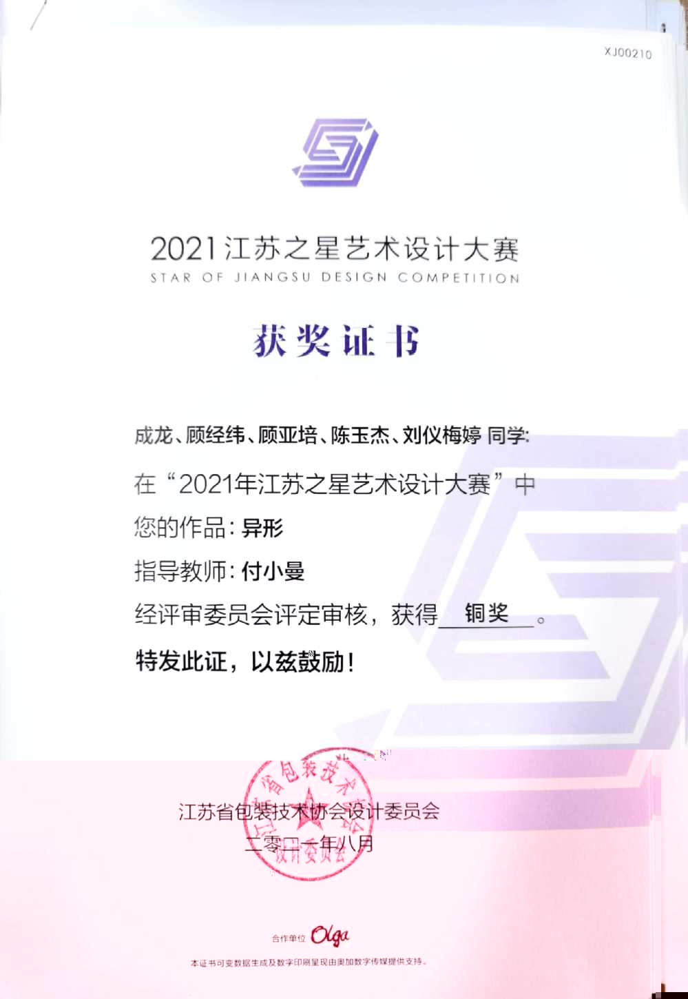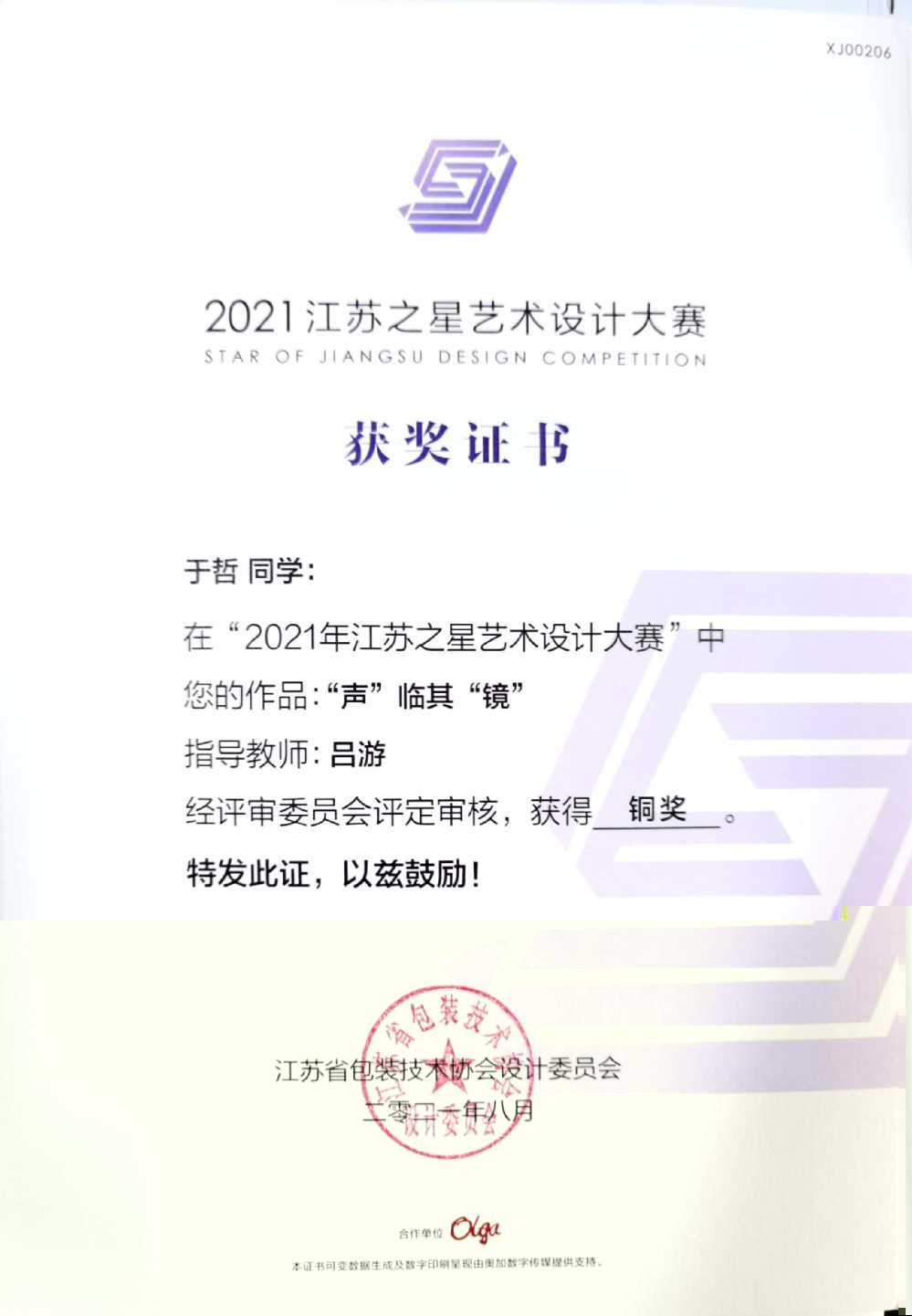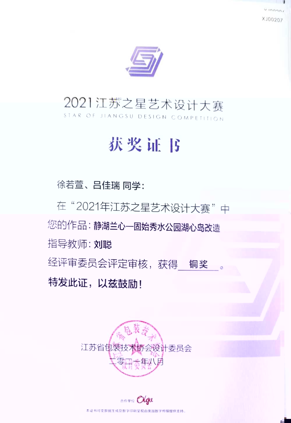 由江蘇省包裝技術協會設計委員會主辦的“2021江蘇之星藝術設計大賽”賽事評審結果近日揭曉,環境設計專業選送的學生作品獲優異成績:“2021江蘇之星藝術設計大賽”獲金獎1個、銀獎1個、銅獎5個、優秀獎7個,優秀指導教師1個,總計為15項;