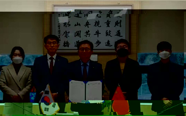 受疫情影響,本次簽約儀式通過線上會議進行,副院長尹平與韓國東明大學副校長權重洛在線上會面。