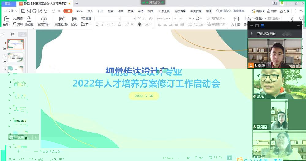 2022年3月30日下午,視覺傳達設計教研室線上召開了2022版本科專業人才培養方案修訂工作啟動會,視傳教研室全體教師參加了此次會議,會議由視傳教研室主任李敏老師主持。本次會議标志着我院視覺傳達設計專業2022版人才培養方案修訂工作正式全面啟動。