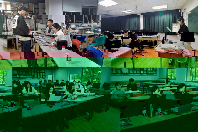 針對部分設計方案,答辯老師針對性地給出了修改意見。通過這樣零距離的問答方式,一方面是考察同學們對自己設計作品制作流程的熟悉程度,另一方面,考察同學們對專業知識的掌握程度及心得體會,以及對自己作品的反思和總結。整個答辯工作師生交流氣氛融洽,過程順暢。