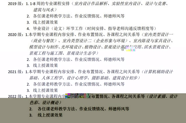 會議組織2019-2022各年級學生代表就本專業教育教學工作提出意見和建議,在本次會中,同學們積極地就本學期專業課程内容安排、作業布置情況、各課程之間關系、兼職教師授課情況、實踐教學環節等方面提出了相關建議以及真實反饋。同學們對本學期的課程安排以及授課老師給予了較高的評價,表示收獲滿滿。同時,建議增加校外實踐環節課時從而更好的銜接畢業實習與就業;建議校内實驗實訓室設備及時更新更好地服務課程實踐教學;建議課程作業的形式更豐富多樣化、細化考核标準從而更高效的達到教學成果。