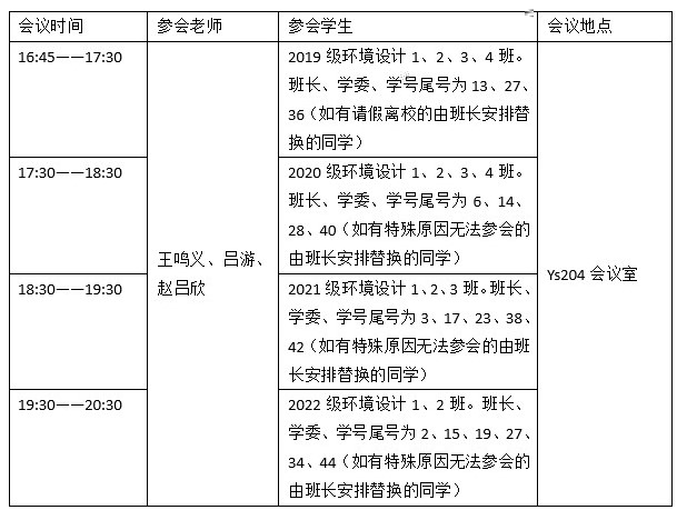 為進一步了解環境設計專業學生學習和生活,聽取學生對教學各環節的意見和建議,進一步提高本專業教學成果,2022年12月6日于YS204會議室開展環境設計專業教學工作學生座談會。本次會議由環境設計專業教研室主任呂遊主持,王鳴義院長、趙呂欣老師、各年級學生代表參會。
