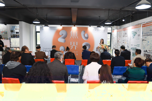 視覺傳達設計專業丁必健同學作為畢業生代表發言,他向母校和老師們表達了衷心的感謝,感恩大學生活讓同學們學會了分析與思考、繼承與創新以及學以緻用。教師代表姚璐老師向即将走出校園的同學們獻上了最真摯的囑托和祝福。金審學院副院長傅康生帶來了總結性發言,認為本次設計展充分發揮産教融合的優勢,在視覺設計、藝術與科技、材料多元化應用、設計手法創新等方面都有可喜的突破和大膽嘗試。