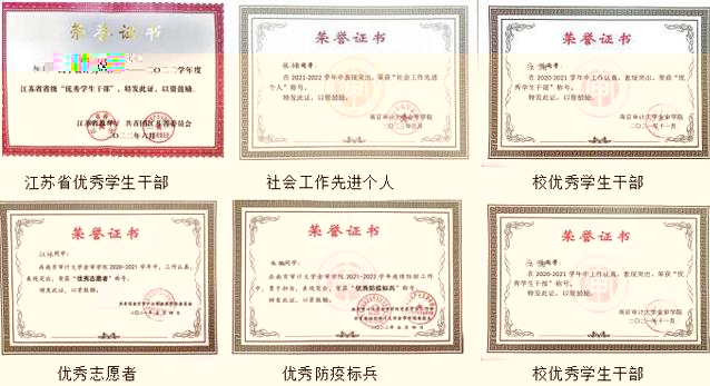 将近四年的班長生涯讓她收獲頗多。工作上,她以“以身作則,腳踏實地”時刻勉勵自己,帶領班級先後獲得“優良班風班”和“先進班集體”的榮譽稱号。在做好班級建設的同時,也注重自身能力的發展。大三學年她獲得江蘇省”優秀學生幹部”的榮譽稱号,連續兩年獲得校級“優秀學生幹部”“社會工作先進個人”。課餘,她積極參加志願服務共22次,獲得“優秀志願者”稱号。身為黨員和班幹,疫情期間,她積極參加志願巡邏工作,為隔離的同學送去飯菜,并獲得“優秀防疫标兵”稱号。身為自管會辦公中心副主席,她組織了多次大型活動,獲得”優秀幹事”榮譽稱号。身為伟德国际1949官方网站學生黨支部宣傳委員,她做好每一次的官微推送、宣傳工作和材料的撰寫,2022學年,《最佳黨日活動》獲得二等獎。
