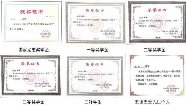 學分績點排名同專業第六,綜測排名專業前十。曾獲國家勵志獎學金、一等獎學金、二等獎學金、三等獎學金,連續兩年獲得“三好學生”榮譽稱号。連續三年獲得“五德五愛先進個人”。通過英語四級、計算機一級、普通話二級甲等考試。擔任“綠色環保理念下的幼兒自然認知工坊設計研究”大創項目主持人并成功結項。通過高中美術教師資格證筆試考試。