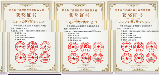 本次江蘇省科普公益作品大賽中,我院環境藝術專業15名學生,共計13件作品,獲得了一個一等獎,三個二等獎,九個三等獎。