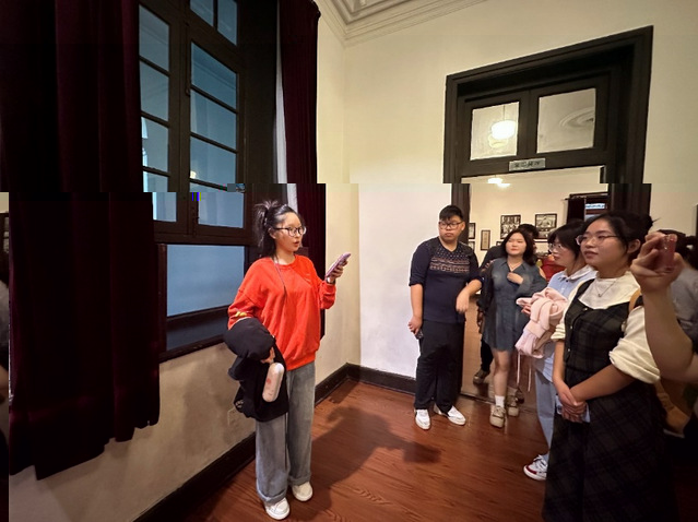 city walk的第一站是南京總統府。“南京總統府是中國近代建築遺存中規模較大、保存較完整的建築群,也是南京建築的主要代表之一,中國近代曆史的重要遺址,現已辟為中國近代史遺址博物館,這裡見證了中國從封建王朝到民主共和國的曆史變革。”組織部的孔怡然同學作為第一站的“導遊”向大家介紹到。