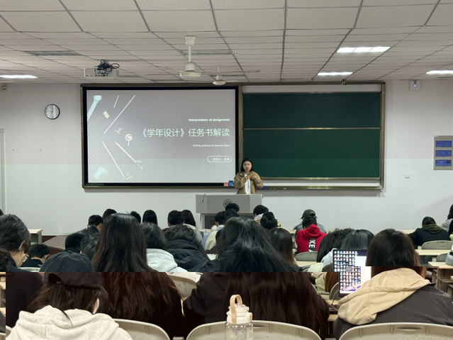 本次會議着重明确學年設計的重要性、目的及意義,對環境設計專業《學年設計》具體工作開展流程以及任務書進行了詳細解讀。然後針對開題報告的寫作展開了指導,從選題的分類、選題研究步驟落實的方法、如何撰寫開題報告、如何進行材料整理等方面入手,解決了同學們選題研究中的困惑。特别提出了論文選題應“小題大做”,建議同學們論文選題不宜大而空,要能反映個人貢獻、要依托實際項目、要突出核心技術和創新點。