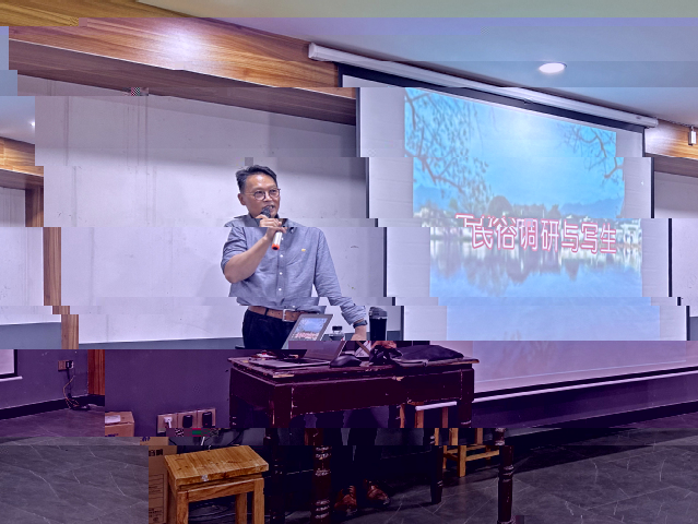 王院長緊接着闡述了此次寫生的課程目标。他指出,通過實地寫生,同學們能夠更直觀地了解徽派建築的風格特點,掌握寫生技巧,提升藝術修養和創作能力。同時,這也是一次難得的實踐機會,能夠讓大家将所學理論知識與實際相結合,提高綜合應用能力。在作業要求方面,王院長提出了明确的标準,鼓勵同學們大膽創新,嘗試不同的表現手法和風格,展現自己的藝術個性和創造力。此外,王院長還詳細地解讀了未來六天的行程安排以及徽州的風土人情、建築風格、著名的三雕藝術等,讓同學們對即将探訪的這片土地充滿了期待。