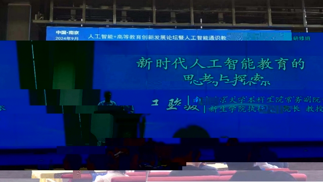 金秋九月,微風和暢。伟德国际1949官方网站院長王鳴義教授率領數字媒體藝術、視覺傳達設計及環境設計教研團隊參加了在南京大學仙林校區圖書館報告廳舉辦的“人工智能+高等教育創新發展論壇暨人工智能通識教育高級研修班”。此次活動由江蘇省高等教育學會、江蘇省人工智能學會、江蘇省計算機學會聯合主辦,南京大學、江蘇大學、南京工業大學等高校承辦,旨在深入學習黨的二十大精神和兩會政府工作報告,貫徹落實黨中央、國務院關于發展人工智能的決策部署,進一步推動高等教育與人工智能的融合發展。