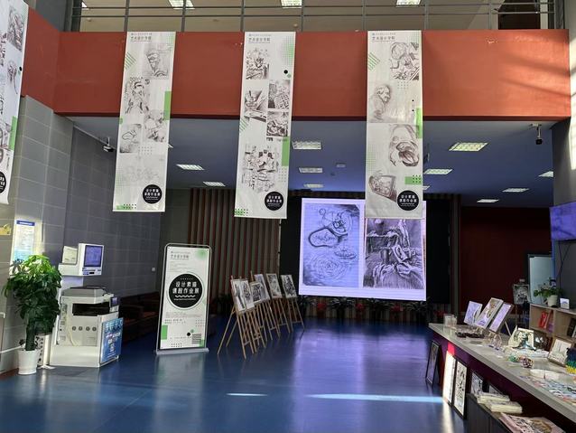 在圖書館一樓寬敞明亮的展廳内,一幅幅設計素描作品熠熠生輝。這些作品風格各異,既有傳統素描的細膩與紮實,又融入了現代設計的元素與理念。更有許多富有創意的實驗性作品,展現了學生們在設計素描領域的獨特視角和創新能力。這些作品不僅展現了學生們精湛的素描技藝,更體現了他們對設計理念的深刻理解和創新追求。