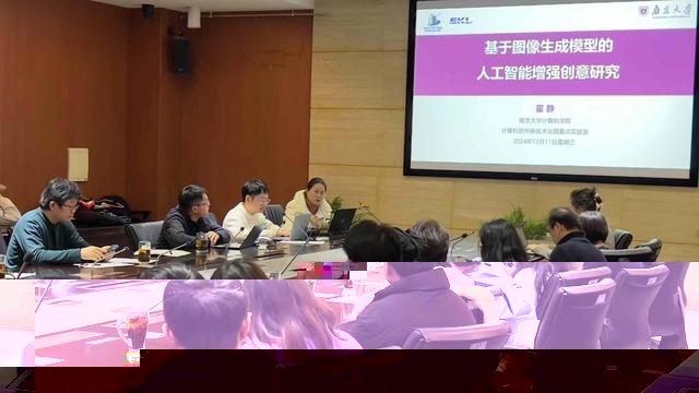 2024年12月11日,藝術與科技系主任張文婷,青年骨幹教師陳曉蕾、王紫韓,受邀赴南京大學仙林校區計算機與科學技術系參加“AI+圖形 for art”學術研讨沙龍,并進行設計項目成果分享。