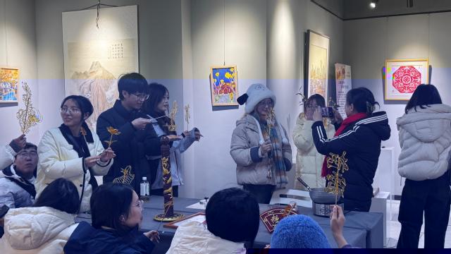 栖霞民藝館是栖霞區展示和傳承非物質文化遺産的重要平台,本次實地調研,學生們不僅有機會近距離接觸和了解非遺文化,更通過三位非遺傳承人的現場展示,深刻感受到了傳統技藝的魅力。非遺傳承人餘應香展示了張氏糖畫的制作工藝,非遺傳承人葛傳民展示了南京剪紙的獨特技藝,而非遺傳承人李興旺則為大家帶來了面塑的現場展示。這些技藝精湛的表演不僅讓學生們大開眼界,更激發了他們對傳統文化的濃厚興趣。