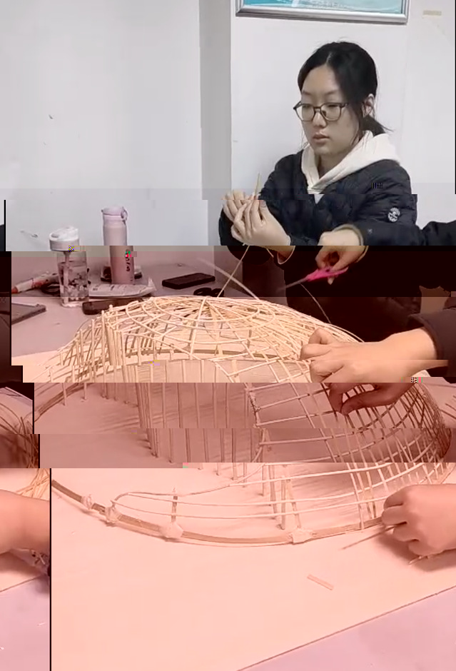 《建築設計初步》作為本專業的學科基礎課,任課老師:陳良梅、趙呂欣,授課班級2023級環境1、2、3班。針對實踐教學環節不斷進行教學改革,這次我們踏上了一場别開生面的的探索之旅,将傳統與現代、藝術與科技巧妙融合。以“竹、藤編非遺技法在建築模型制作中的應用”為主題,不僅是一次對傳統手工藝的傳承緻敬,更是對建築設計創新邊界的勇敢跨越。授課教師陳良梅和趙呂欣指出,這些作品不僅是物質空間的構建,更是情感與文化的傳遞。每一根藤條,都仿佛在訴說着古老的故事,與現代設計理念交織共鳴,展現出一種跨越時空的對話。它們不僅考驗着學生們的創新思維與動手能力,更是一次對傳統文化價值的深刻體悟與再創造。