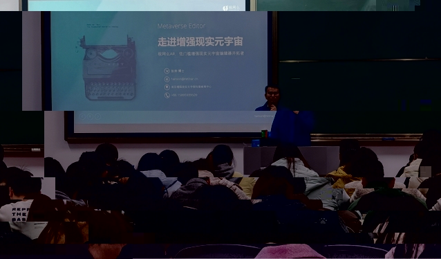 本次講座聚焦于元宇宙的發展趨勢以及如何利用視網麼AR工具構建屬于自己的元宇宙空間。張帥博士不僅分享了前沿的技術理念,還詳細介紹了視網麼AR元宇宙編輯器的操作方法,鼓勵從業者和科技愛好者充分利用身邊的多媒體素材,創作獨具特色的AR數字内容。他希望通過此次活動,讓更多人深入了解元宇宙的内涵及其在現實生活中的應用價值,激發對增強現實技術的興趣與創新潛能。